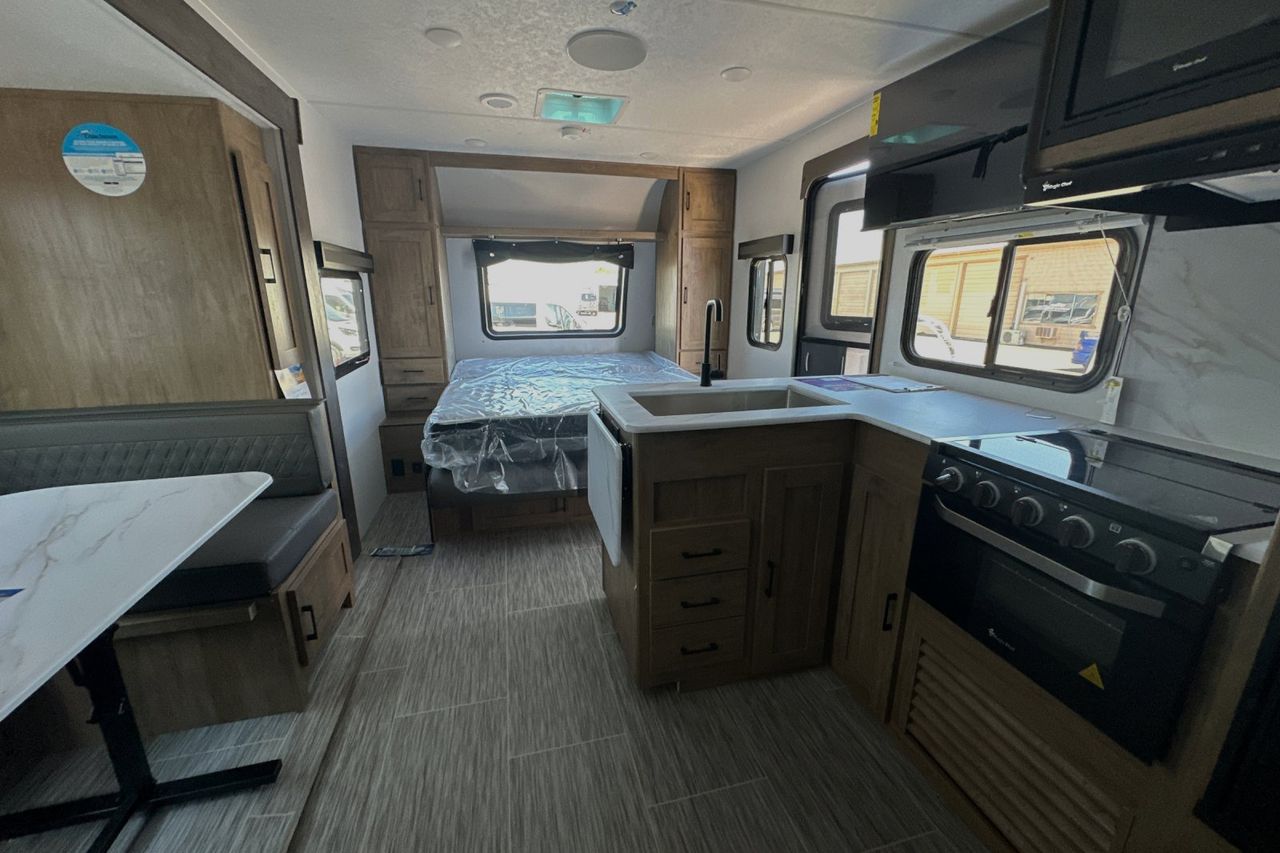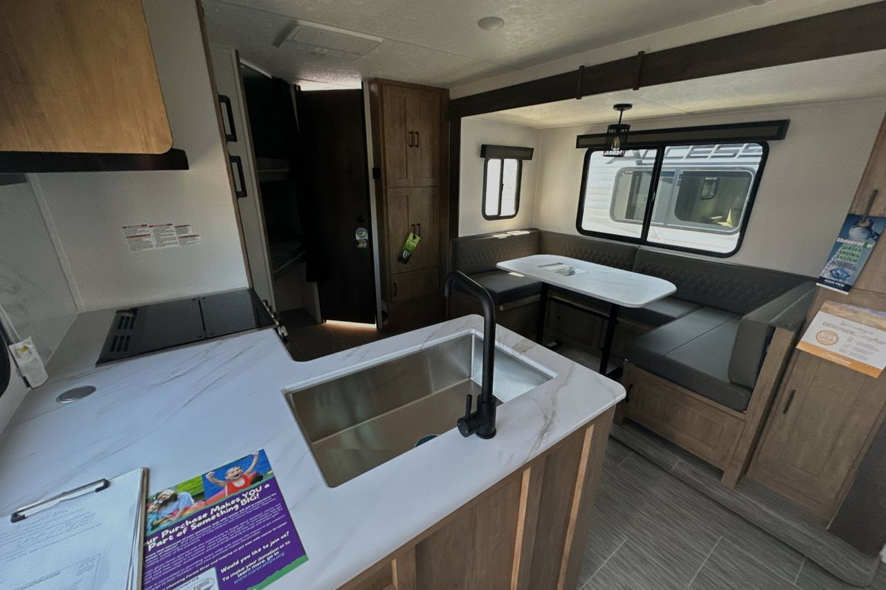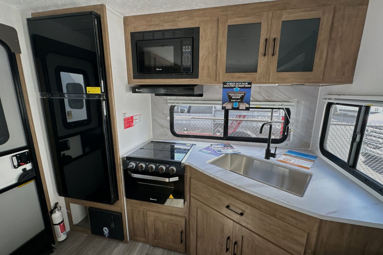 The kitchen in this Coachmen RV Freedom Express Ultra Lite 246RKS travel trailer is great for easy meals.