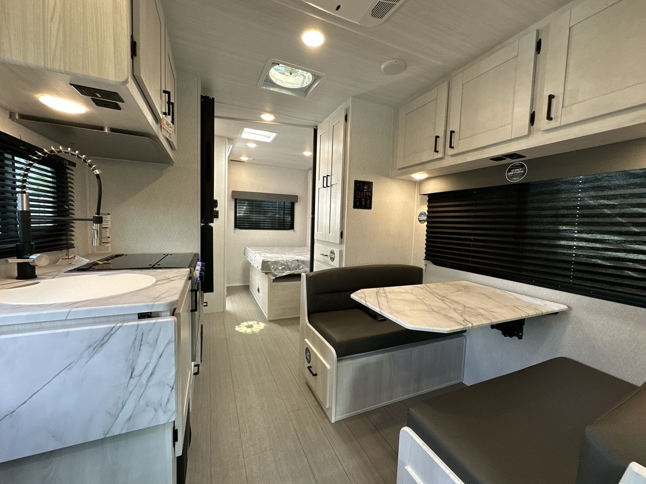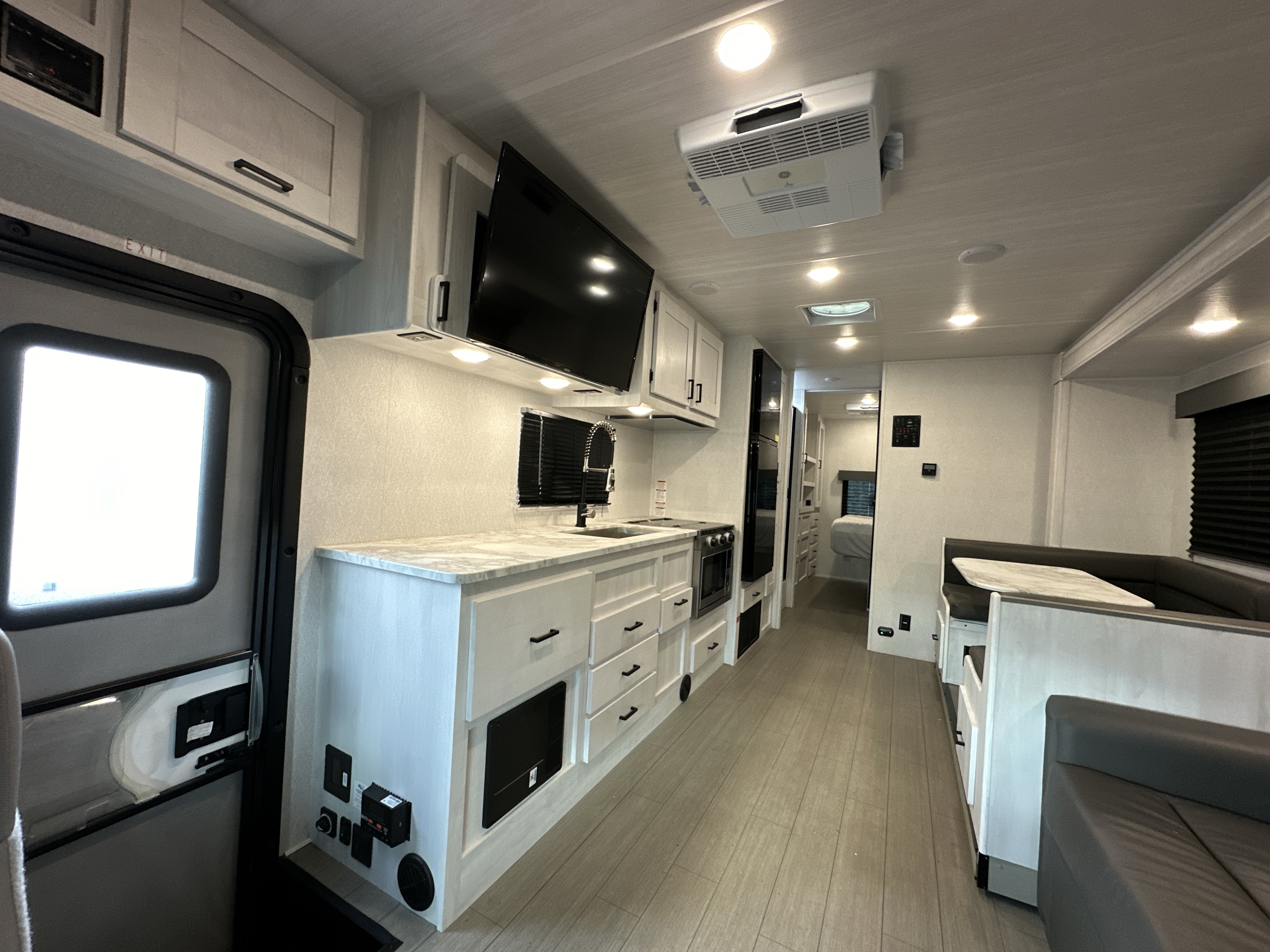 Enjoy a fully-equipped kitchen, complete with top-notch appliances, so you can whip up your favorite meals wherever you roam. Relax in the cozy living area, featuring comfortable seating and entertainment options for those downtime moments. And when it’s time to rest, the Entrada’s sleeping accommodations provide plenty of room for the whole crew to sleep soundly, with storage galore to keep your belongings organized.