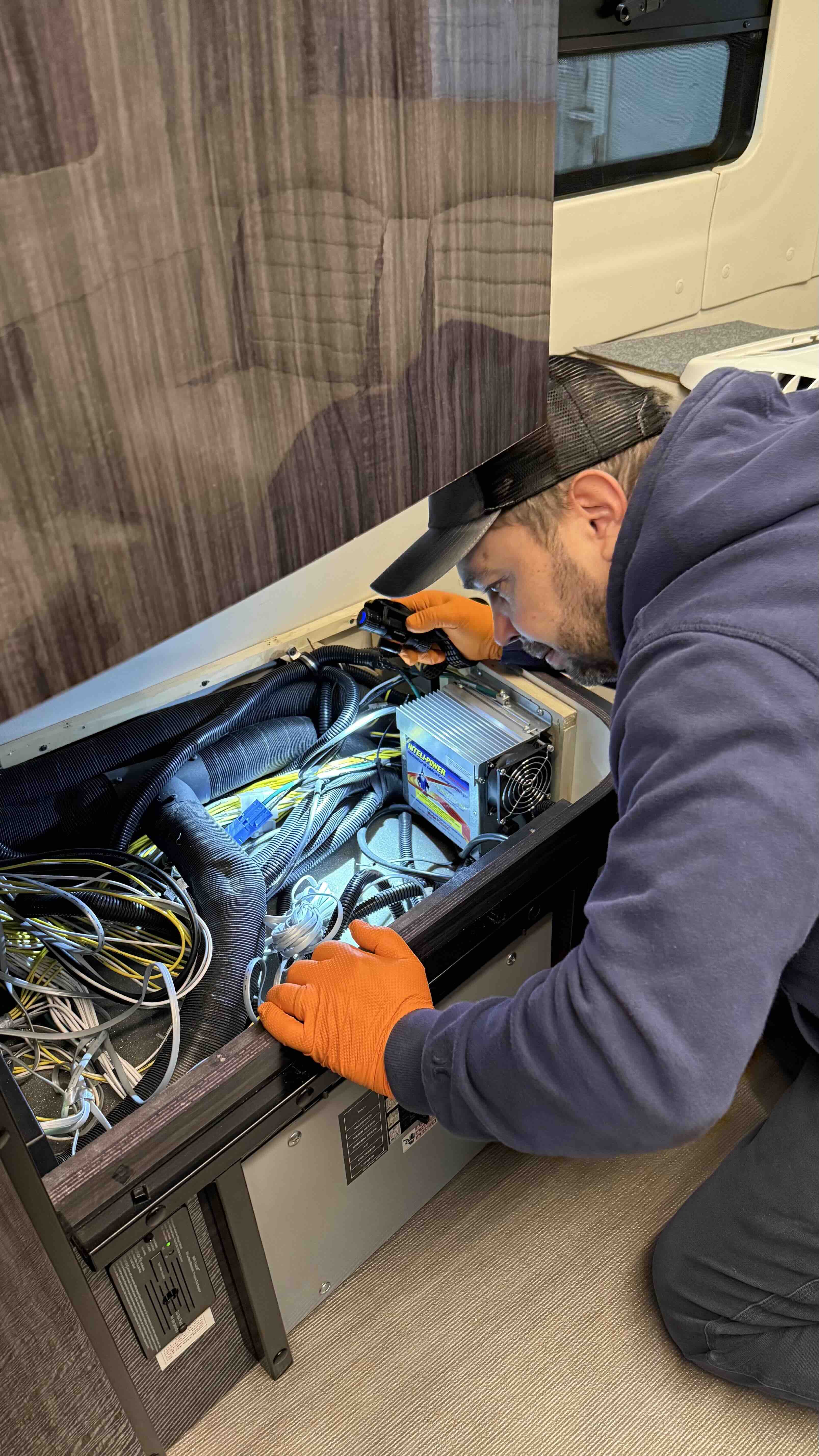 - Electrical: Plug in shore power; test outlets, lights, converter, breaker panel, and GFCI outlets.
