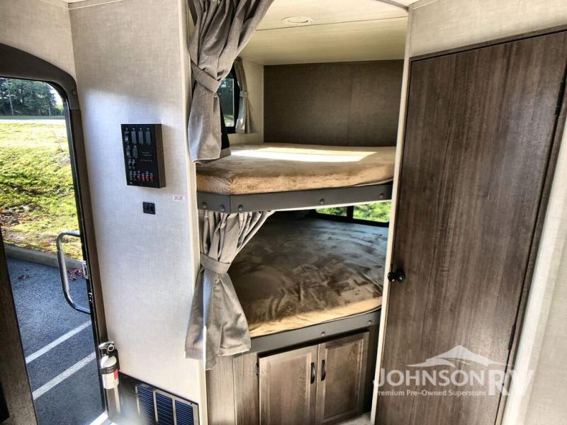 We have several bunkhouse RVs for sale in our inventory, and a wide variety of bunkhouse configurations between them. Other floorplans include separate entertainment options in the bunkhouse! These are only a few of our favorites. We’d love to help you decide on the perfect bunkhouse RV for your family, so contact us today if you have any questions or would like to compare these fantastic, family-friendly RVs in person.