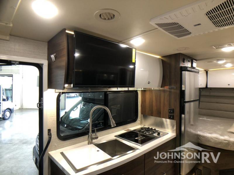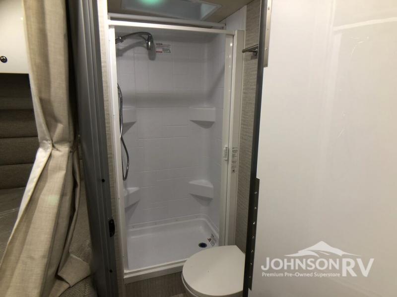 You’ll find both beauty and functionality throughout every inch of the Winnebago Navion. A full galley kitchen makes quick and easy work of meal prep, and includes the following: Laminate countertops Microwave/convection oven w/touch control 2-burner induction & LP range cooktop Double-door 12V compressor refrigerator/freezer Cabinets with accent lighting Double stainless steel sink w/2 sink covers